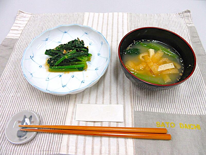 青菜のごま和えと青菜と油揚げの味噌汁を作りました