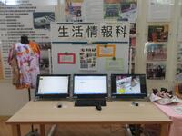 3年生が表計算ソフトウエアのプログラミング機能を利用してBMIを計算するプログラムを作成したものや課題研究で製作した作品、生活情報科で学んだ学習内容を思い出として動画にまとめた内容を展示しました。